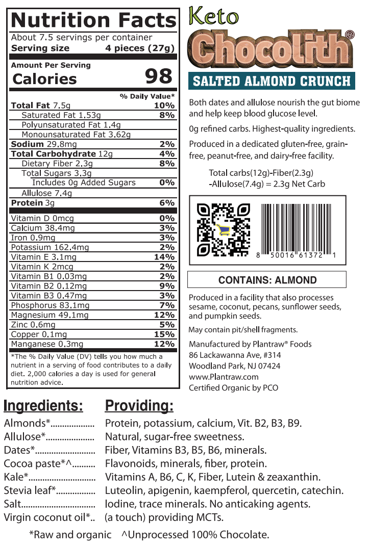 Chocolith® - Salted Almond Crunch (7oz) - Keto, Vegan, Organic, Gluten-Free, 0g Refined Carbs