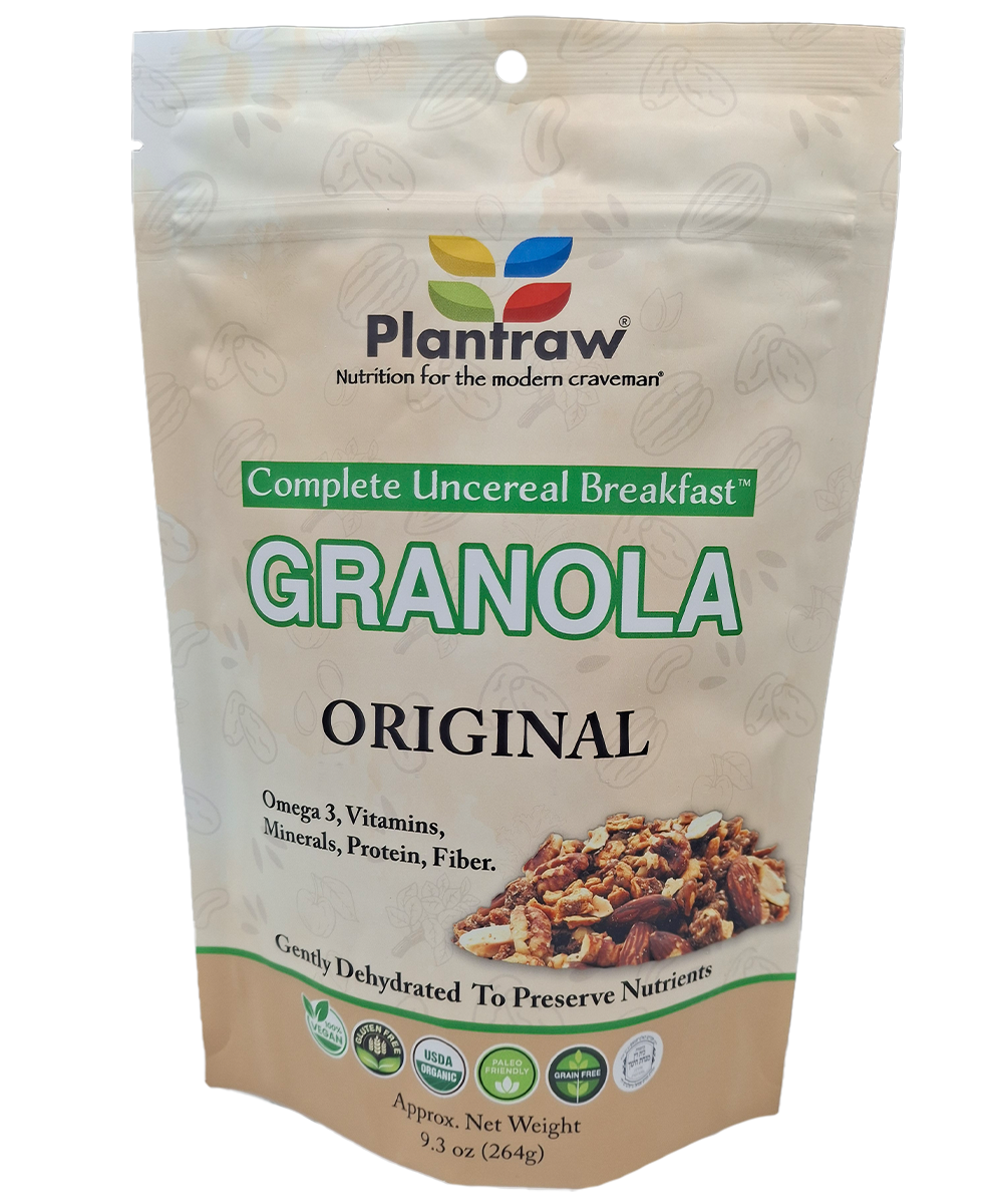 At Plantraw® we have carefully formulated our granola to be as nutritious as possible without compromising on flavor. The result is a product that is also free of grains and gluten, making it an excellent choice for people with such dietary preferences. Competing offerings in the gluten- and grain-free space typically appear to have been aimed at meeting these dietary definitions at the lowest possible costs, throwing together what appear to have been the cheapest ingredients that would qualify as gluten- and grain-free. In contrast, at Plantraw® we never compromise on quality and nutrition, sparing no effort to create the most optimally-nutritious products, regardless of costs.